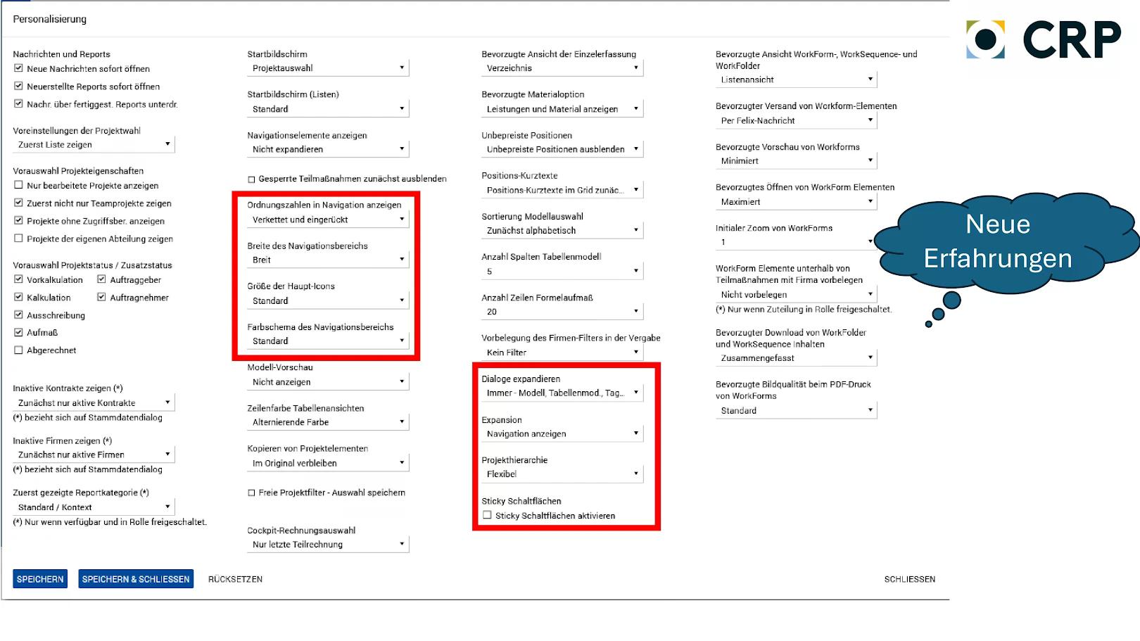 CRP stellt ein umfangreiches Betriebshandbuch zu den Personalisierungseinstellungen bereit.