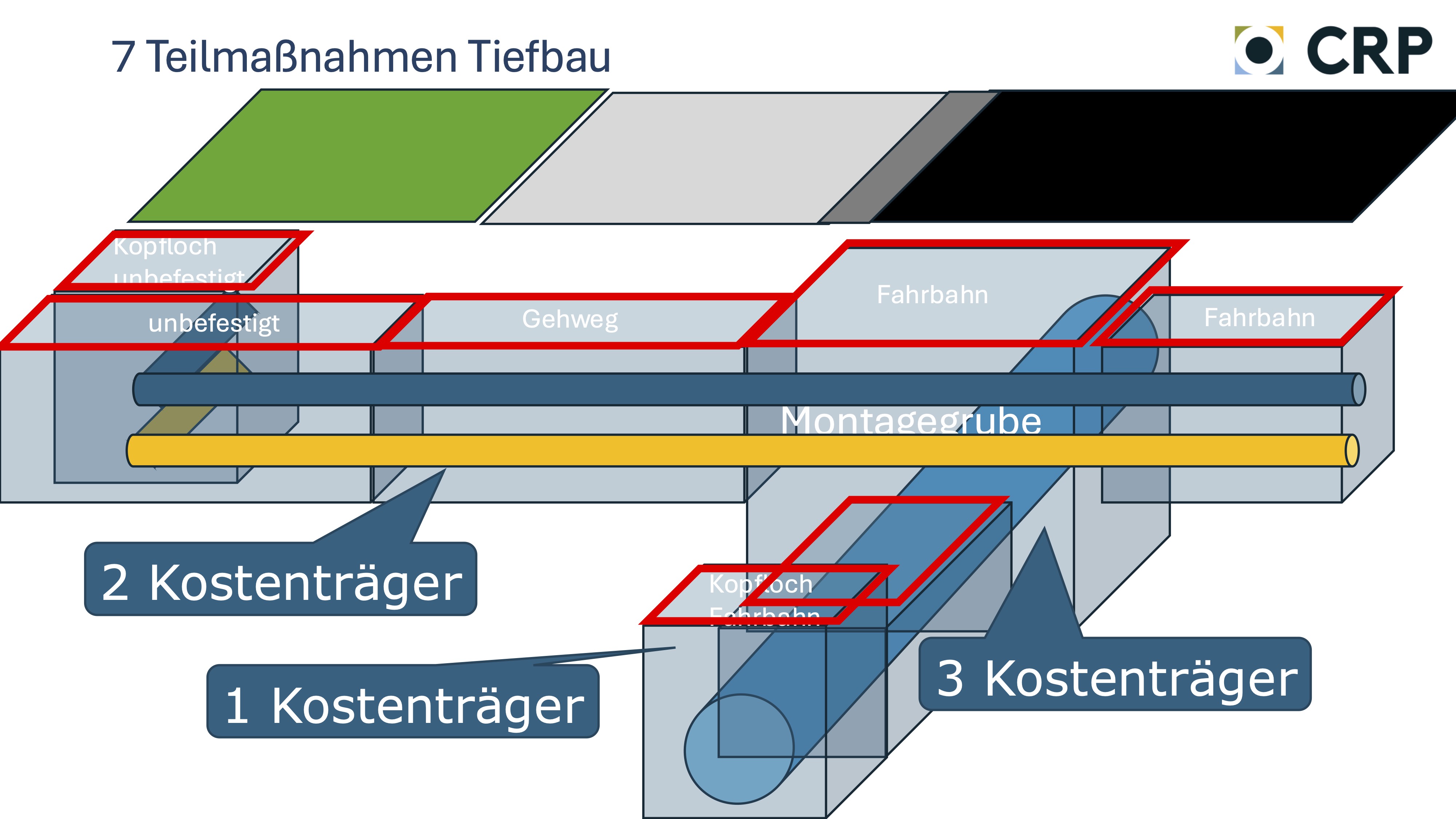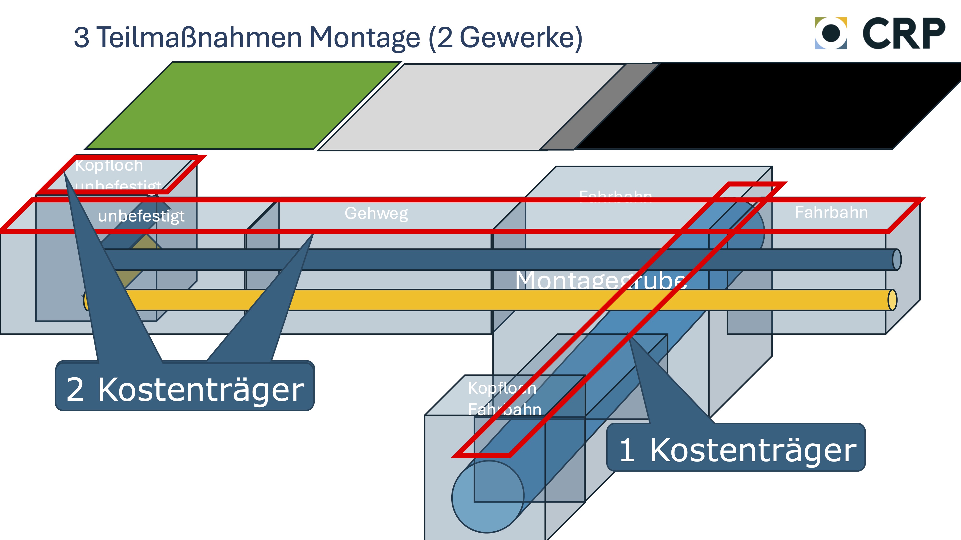 Bei Standard-Reports sinnvoll, die auf Teilmaßnahmenebene aggregieren. Im vorgestellten Beispiel: 7 Teilmaßnahmen für Tiefbau (unterschiedliche Oberflächen/Kostenträger), 3 für Montage.
