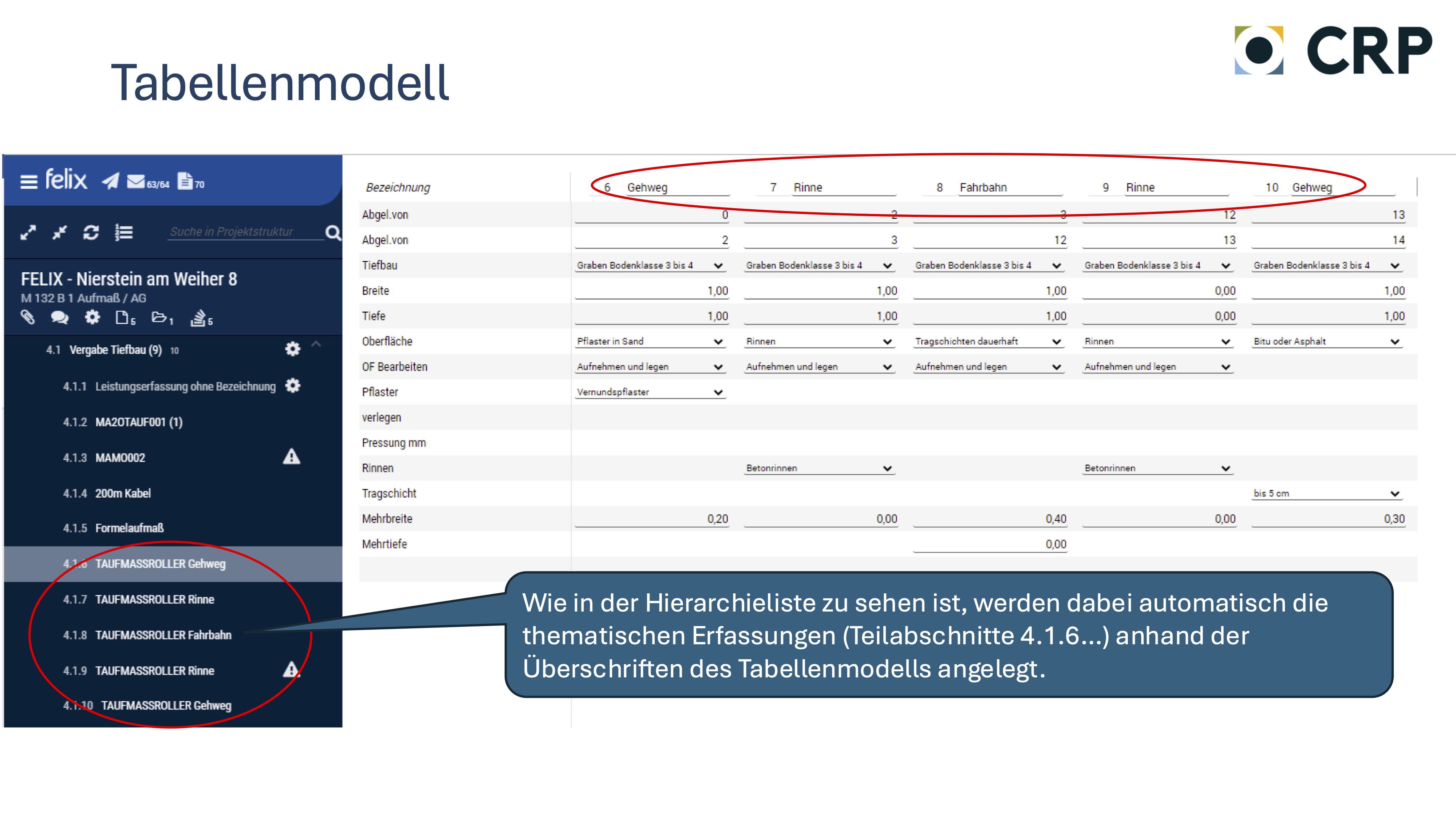 Produktentwicklung: CRP prüft die Implementierung separater Datenfelder für Stationslängen, um die Übersichtlichkeit in der Navigationsspalte zu verbessern. Ein wertvolles Feedback, das die Bedienbarkeit bei langen Stationierungsangaben optimieren würde.